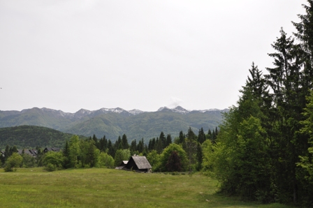 Odpre se prekrasen razgled na hribe, a Krtov nikjer. Aha, pri tistem zadnjem domu so torej!