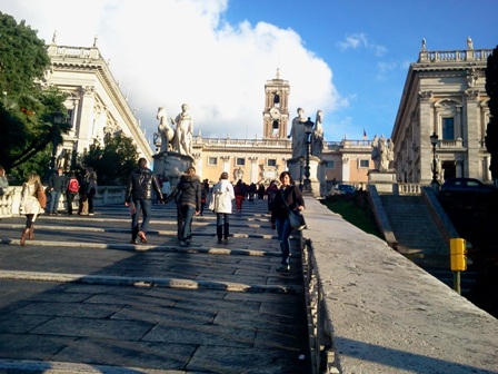 Sva že v blizu Kapitolskega griča, zato se seveda povzpeva nanj po Michelangelovih stopnicah.