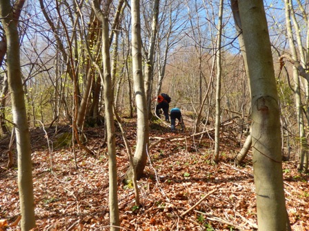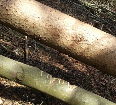 Gledam tele bukve in se sprašujem - kako to, da tule ni nikjer nič podrto? Sem že previsoko? Tu ni bilo žleda? No... tako se sprašujem do ovinka, potem pa kar naenkrat kar nekaj podrtih smrek. Samo smreke, bukve so cele. Kako? In to le en pas, nato je spet vse mirno, nepodrto. Čudno, priznam, da čisto nič ne razumem.