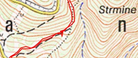 Ves čas gre seveda gor in dol in gor in dol. Pa odcep za pl. Osredek, prvič, pa drugič, pa... hm... da ne bom jaz na Krvavec (spet) prišel? Odcepa v levo nikjer, hodim pa kar naprej v hrib? Tole bo čudno, mogoče bi pa res moral dol zavit na Pl. Osredek? Pa je šlo kar še gor, gor, gor. A k sreči se je kmalu pokazal odcep!