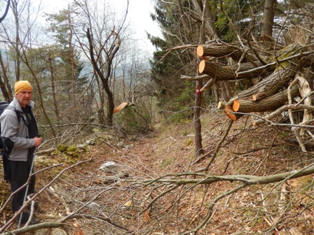 K sreči je šlo, sicer počasi in spet nad, pod, mimo, ob in vse, kar je še teh prislovov. Nato pa se je začela gozdna cesta, ki so jo uporabljali za spravilo vsega tega podrtega lesa.