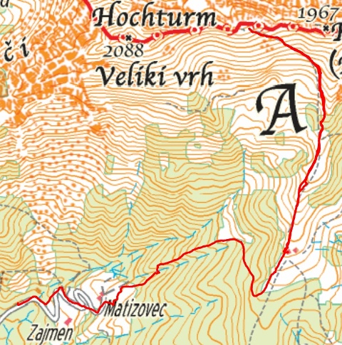 A treba je kvišku, samotna, ozka markirana pot, ne prav veliko uporabljana, zarjavela varovala, še v dobrem stanju