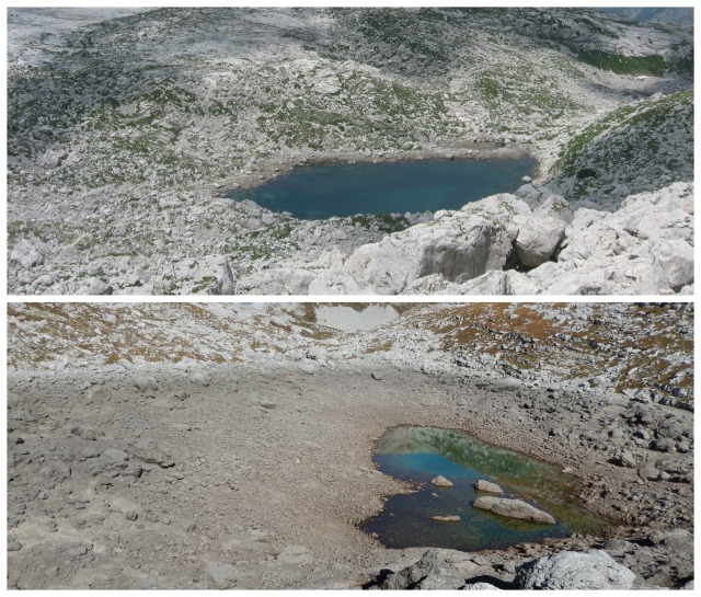 Na tem prizorišču smo že bili, davnega 2010. Takrat nam vreme ni bilo tako naklonjeno in koča je zgledala precej manj ožarjeno... A z Radotom sva se v tistem snegu in megli vseeno prebila do nje!