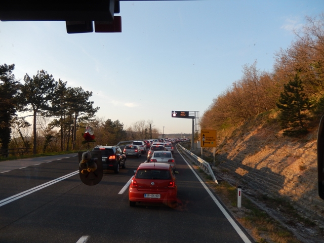 Ni bilo druge, kot da greva naprej po cesti, dokler bo pač šlo. In šlo je do nekega malega parkirišč(k)a. Nimam pojma, kaj narediš, če je avtov več kot štiri. Hm?