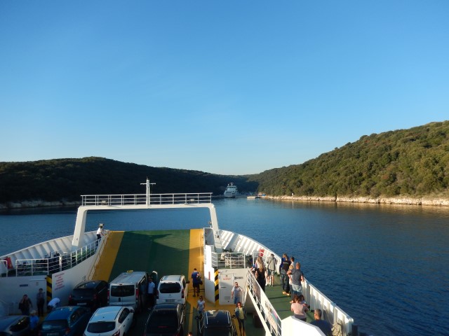 Tokrat kakšne velike gneče ni bilo, na trajekt smo prišli skoraj točno ob 17h, nobenega čakanja! Brestova - Porozina 169 kun za nas tri.