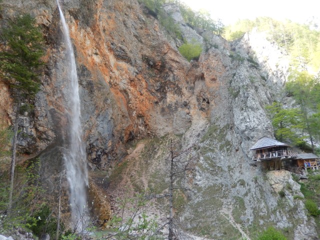 Sva ga odkrila, slap Sušica. S tegale nekoč davno pozabljenega štanta, na kar je opozarjalo par kosov obdelanega lesa, je bil še posebno super!