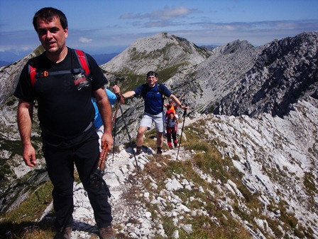 In ja, seveda smo bili hitrejši od skupine z gondolo, za kakih petnajst minut! Uro dvajset smo potrebovali do dol... Zato smo se lahko že delali frajerje in slikali počasneže...