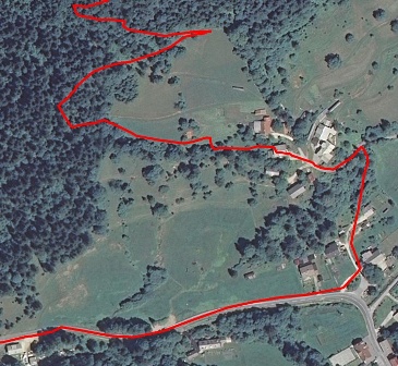 In kakor kažejo starejše satelitske slike - bi prav lahko tamle zgoraj zavila desno in prišla na cesto v desnem spodnjem kotu.